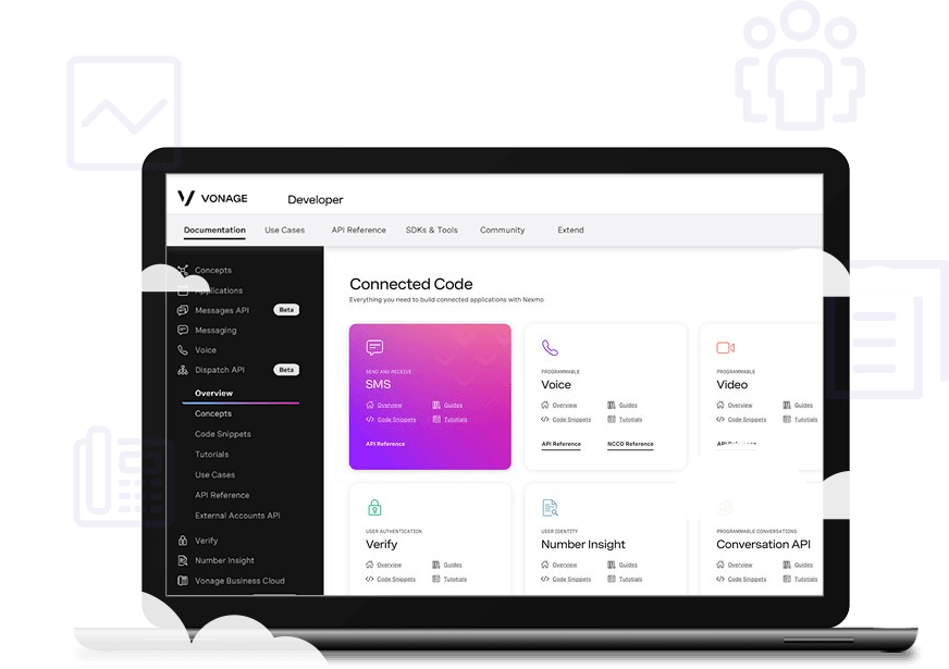Vonage 프로그래밍 가능 솔루션을 사용하면 모든 고객 상호 작용이 기회가 됩니다. 주도적인 위치를 차지하고, 전반적인 고객 경험은 말할 것도 없이 범위, 참여도, 보유율까지 높일 수 있습니다. Vonage 솔루션에 포함된 사항은 다음과 같습니다.